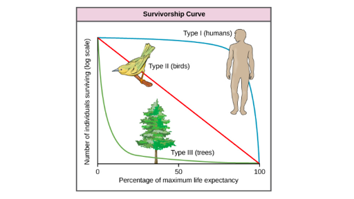 By a type I survivorship curve b. In contrast the Type II curve considers birds mice and other organisms characterized by a relatively constant. By a type III survivorship curve.