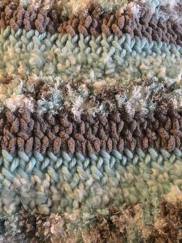 These are some of the most adorable easy and fun blanket patterns using Bernat Blanket YarnWhether you use their fabulous blanket yarn or the baby variety you will love the finished product. This innovative yarn combines four different textures into one easy-to-use product. 15 sc x 16 rows.