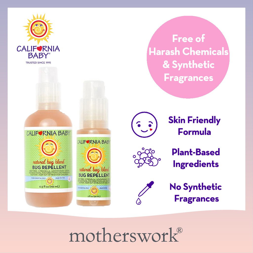 California Baby Natural Bug Blend Travel 1 California Baby Natural Bug Blend Travel 1 1. Our Natural Bug Blend is a effective bug repellent alternative that is safe for the whole family. Its made from vegetable- and plant-based ingredients its super gentle and is scented.