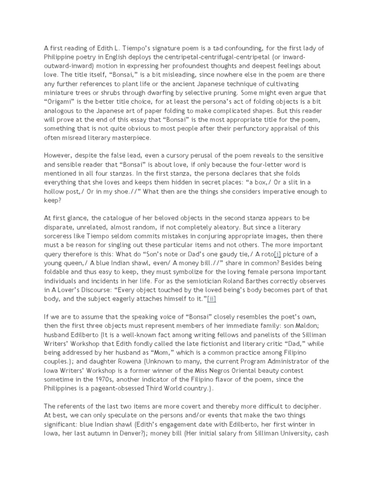 Bonsai poem by biraja bal summary. Some of her known pieces are Lament for the Littlest Fellow and Bonsai Heres a copy of the poem Bonsai. The STANDS4 Network. Something that folds and keeps easy Sons note or Dads one gaudy tie A roto picture of a queen A blue Indian shawl even.